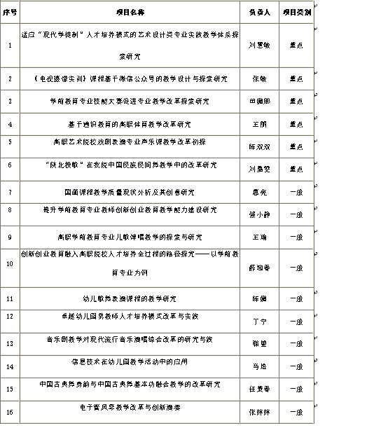 一、2019年度陕西艺术职业学院院级教育教学改革研究项目申报