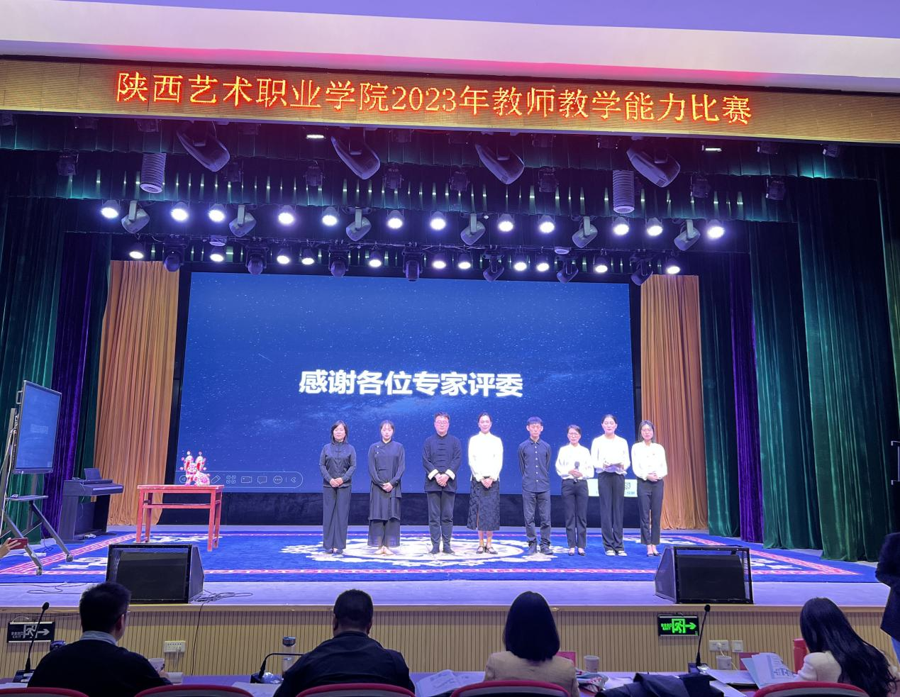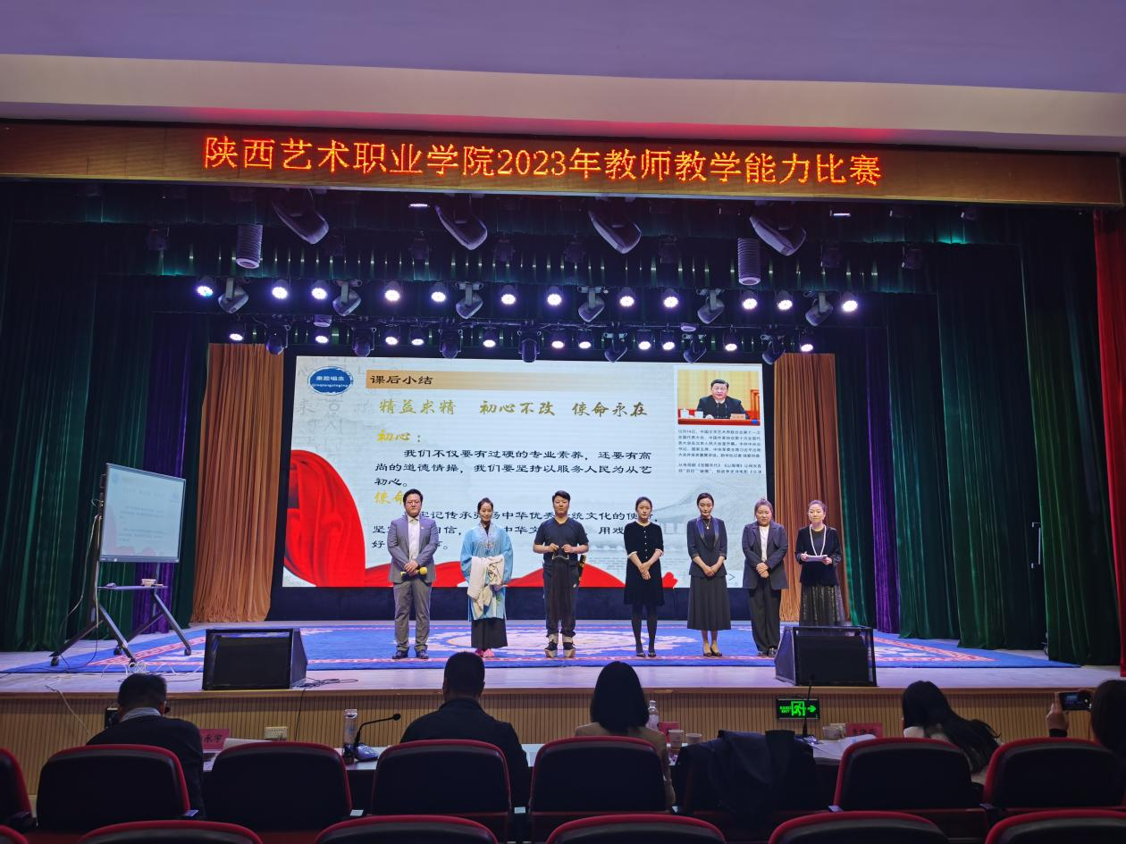 4月21日,我校在文艺南路校区举办陕西艺术职业学院2023年教师教学能力比赛校赛。此次比赛中,我校共有8个教学团队进行了激烈角逐和精彩展示。比赛严格按照省赛标准流程进行,由教学实施报告介绍、无学生教学展示、针对评委提出的问题进行答辩三部分组成。比赛中,各参赛团队材料准备充分、教学思路清晰、过程设计合理、语言表达精炼,充分利用现代信息技术开展线上线下的混合式教学,思政元素巧妙融入课程教学,展现了教师在教学理念和方法上的不断创新。现场展示中,评审专家们分别从比赛要求、目标以及出彩性等多个方面给予了指导性意见,每位评审专家都对参赛作品进行了细致点评,使得每个团队都得到了提升和突破。